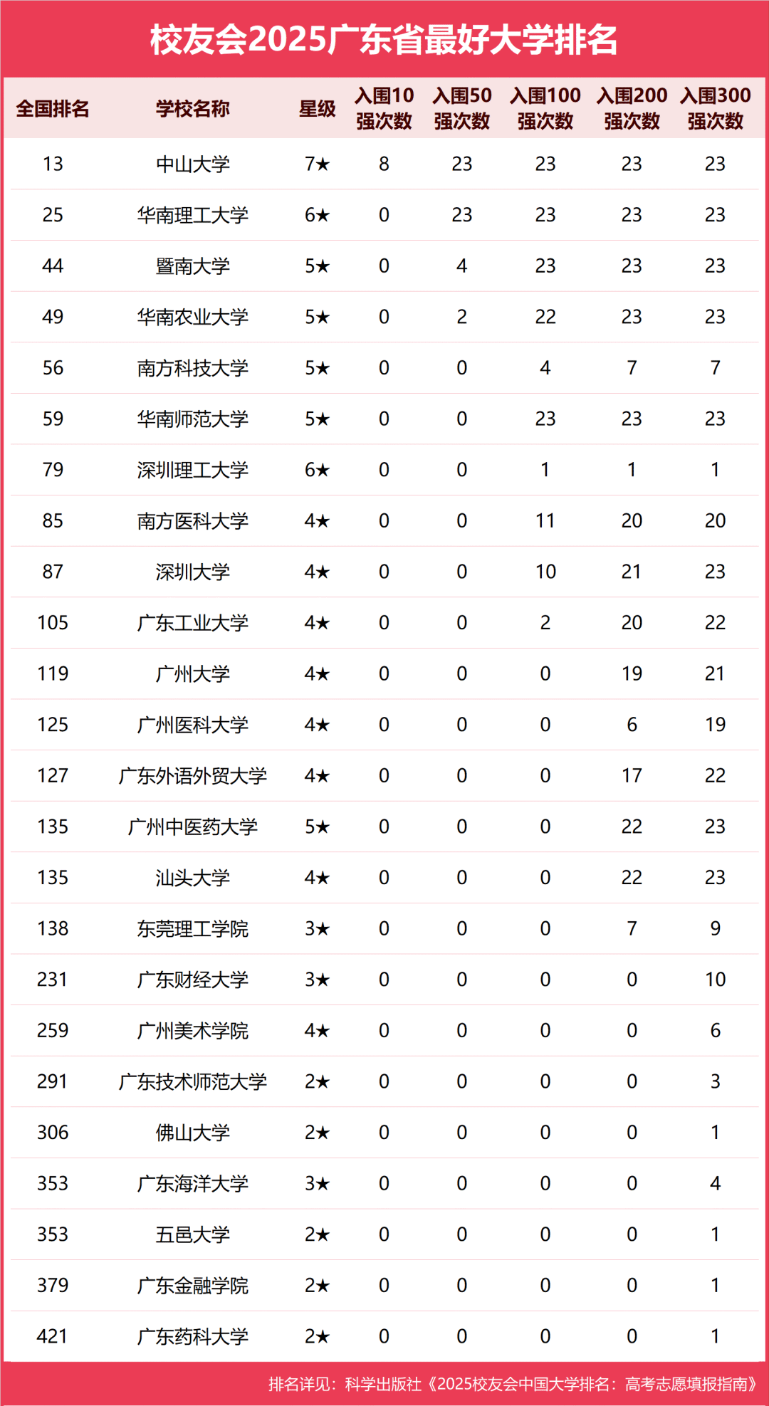 广东省高等教育实力雄厚,优质高校资源丰富。根据艾瑞深校友会网发布的2025年广东省大学排名,广东省内高校排名竞争激烈,多所高校在全国表现亮眼。