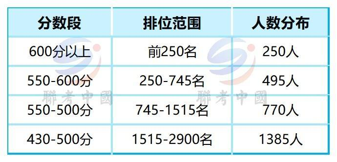 430-500分区间:考生1385人,排位在1515-2900名之间;