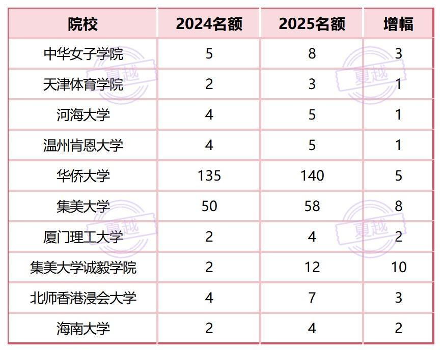理科扩招院校:集美大学及其诚毅学院增幅最大,显示高校对理科港澳台生的持续扩招趋势。