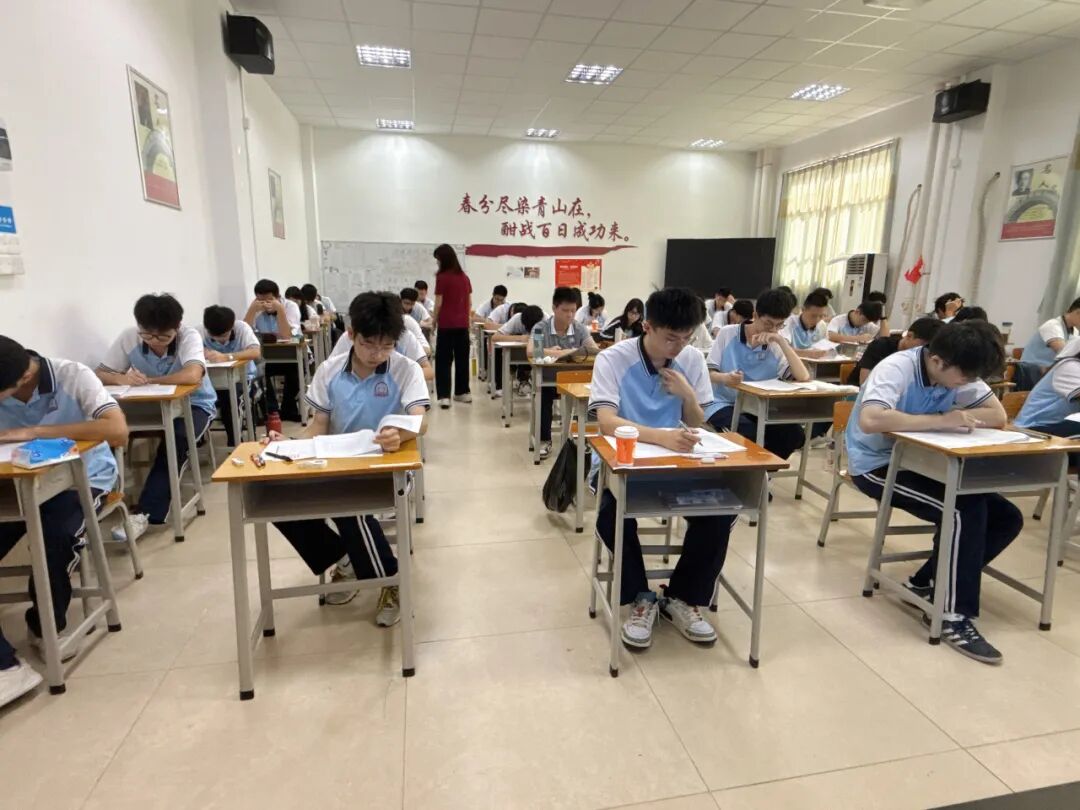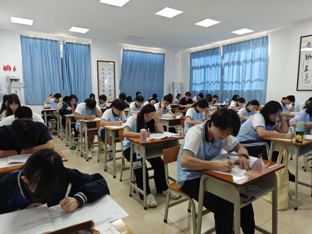 在考场上,考生们全神贯注于考试之中,有的低头沉思,有的笔走如飞,有的在草稿纸上反复验算。他们以严肃认真的态度答题,眼神专注且自信从容,笔尖舞动,书写答案。考场内,只听见笔尖在纸上沙沙作响的声音,字里行间,恰是青少年飞扬青春的生动展现。与此同时,每位监考教师各司其职,各尽其责,时刻关注考生状态,不断巡视,考场纪律规范严明,秩序井然,为考试工作的顺利进行提供了坚实保障。