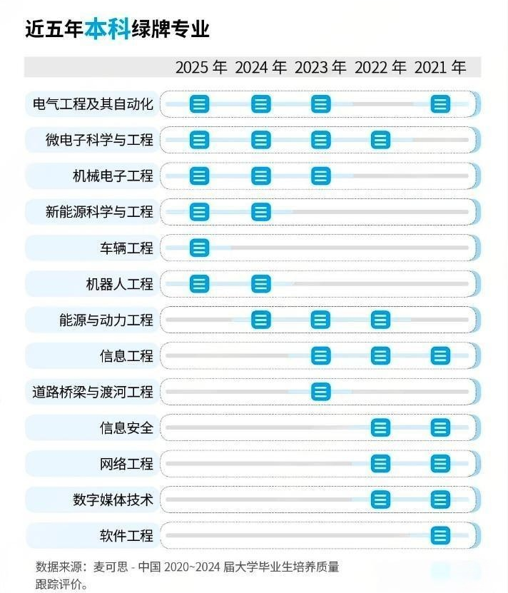 而绿牌专业则包括:电气工程及其自动化、微电子科学与工程等。