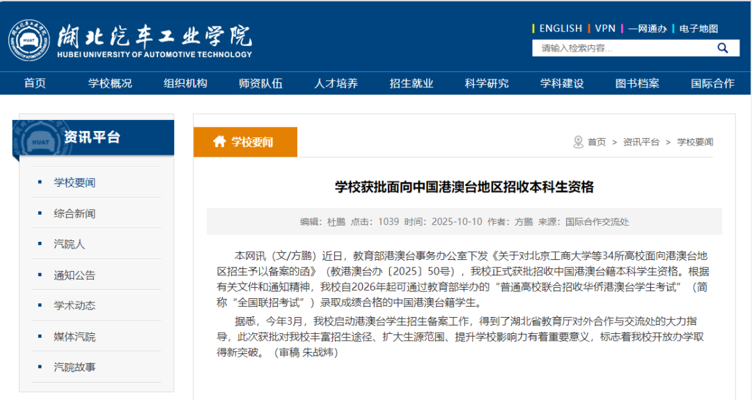 湖北汽车工业学院是全国唯一一所以汽车命名的公办普通高等院校,被誉为“中国商用车之都”,拥有深厚的汽车产业背景。对于有志于在汽车工业领域发展的港澳台学生来说,是一个极具吸引力的新选择。