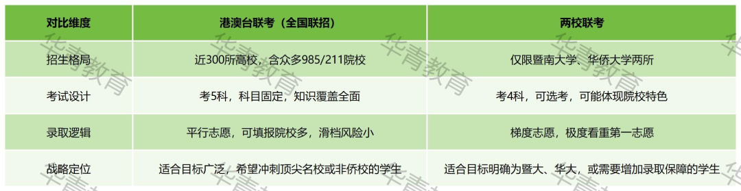 两校联考(精准快车):由暨南大学、华侨大学两所传统侨校联合组织,堪称通往这两所特定高校的“专属通道”。