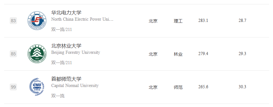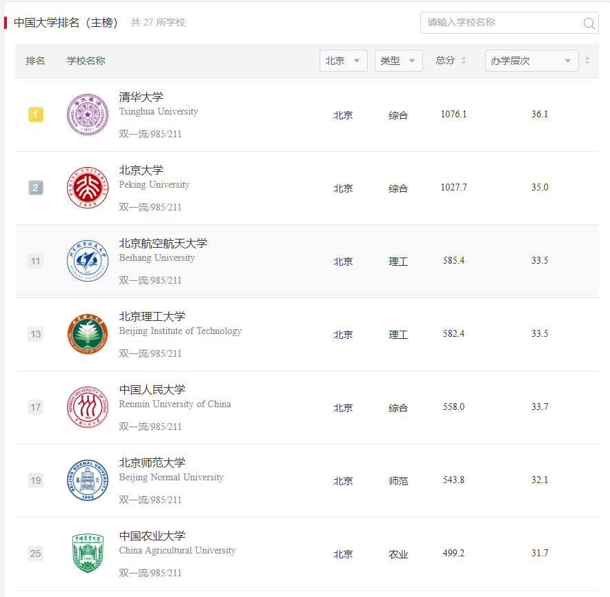 北京高校表现