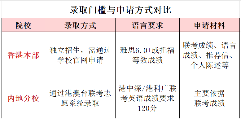 香港本部VS内地分校,两者录取机制上存在根本差异,对联考生至关重要。