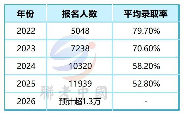 根据公开数据,2025年港澳台联考报名人数突破1.19万人,五年增长166%。2026年预计还将继续增长。竞争加剧导致焦虑情绪蔓延。