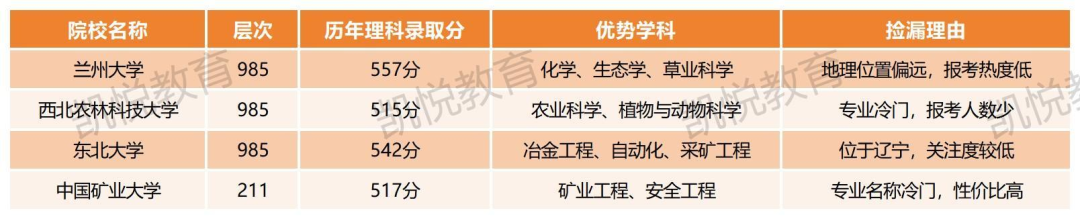 对于中上分段考生,还有部分985/211高校因地域或专业冷门,录取分数相对较低,是“捡漏”机会。
