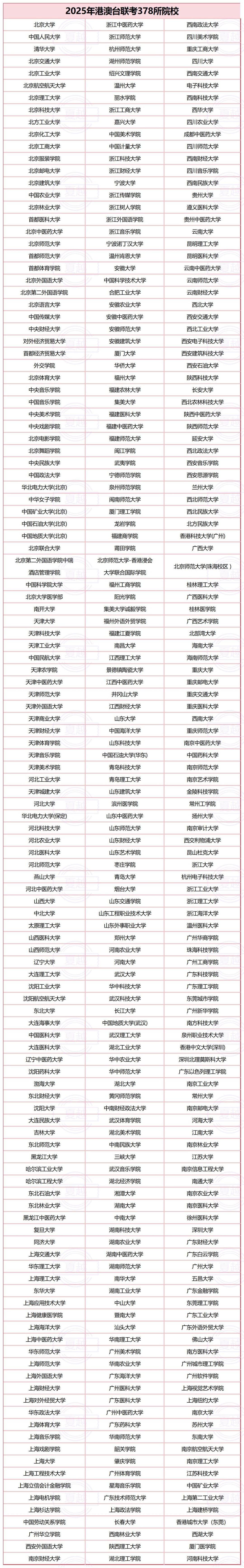 2025年联考招生高校数有所扩容,全国招生院校数达到约378所。