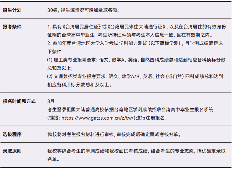 本科面试招收台湾高中毕业生