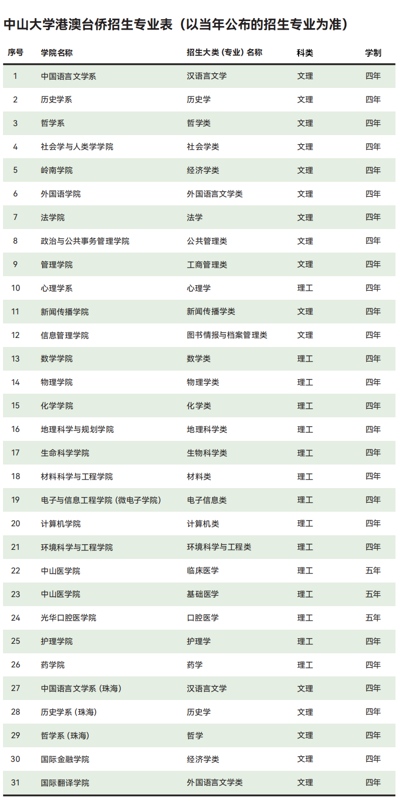 提示:各类型招生如有变动,以当年中山大学本科招生网发布为准;