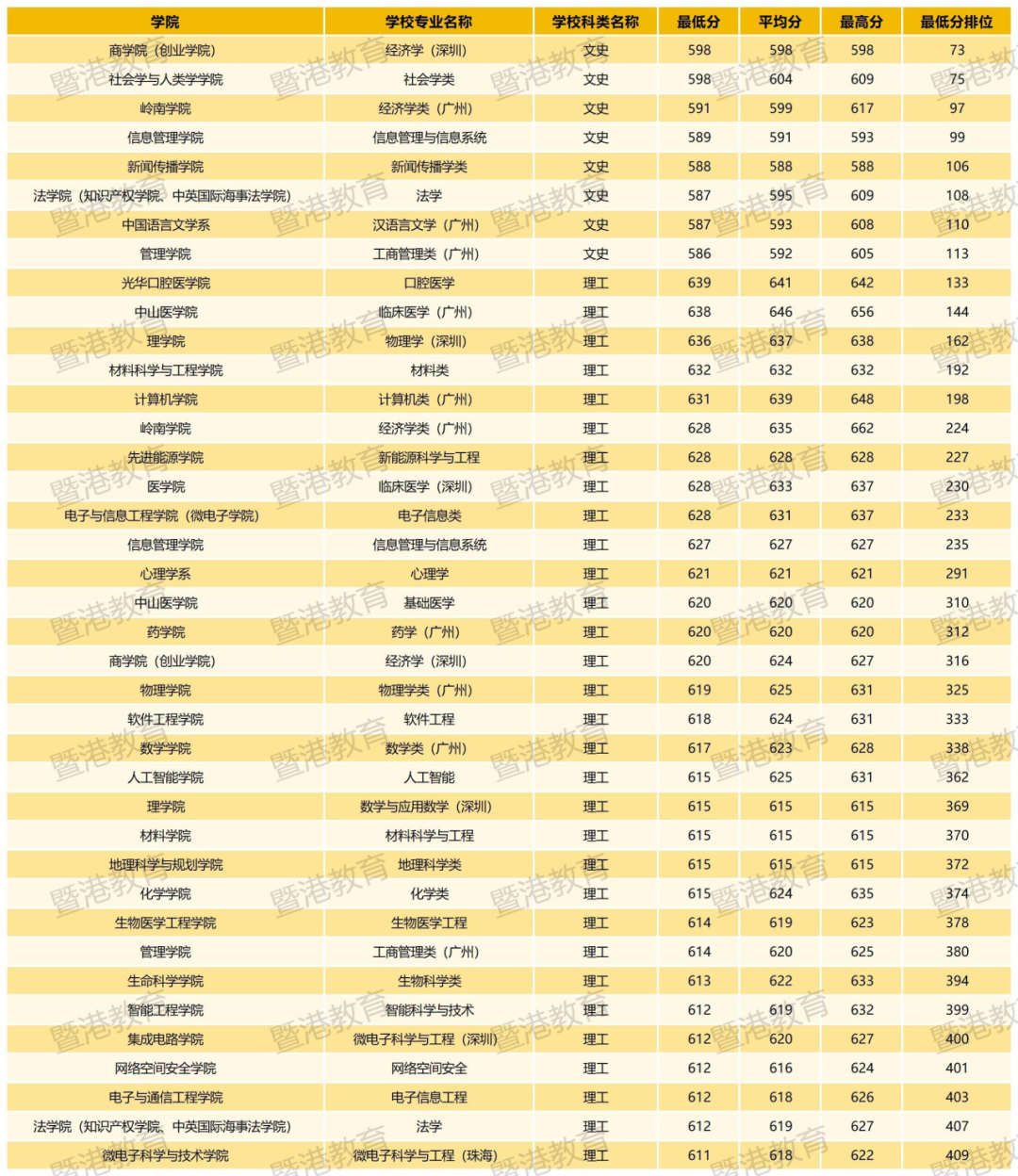 历年录取分数线可在中山大学本科招生网查询,2024年中大各专业分数排位如下: