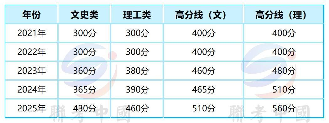2025年联考普通类院校最低录取分数线出现显著上调:文史类从365分升至430分,理工类从390分升至460分。文科65分、理科70分的涨幅创下历史新高。