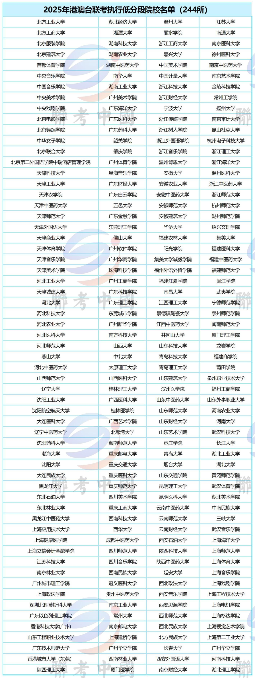 华侨港澳台联考培训学校 > 学习资讯 > 北京联考中国港澳台联考学校:2025年港澳台联考低分段院校最新录取数据