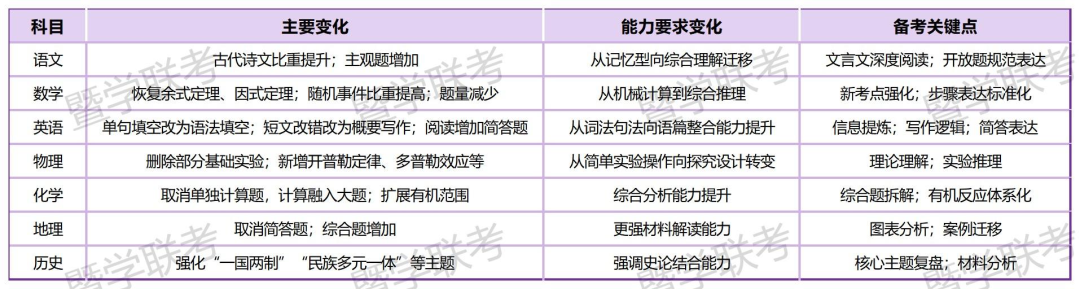 总的来说,此次改革对“分析—推理—表达”的要求全面提升,尤其体现在主观题比例上升、题量减少但难度深化的方向。