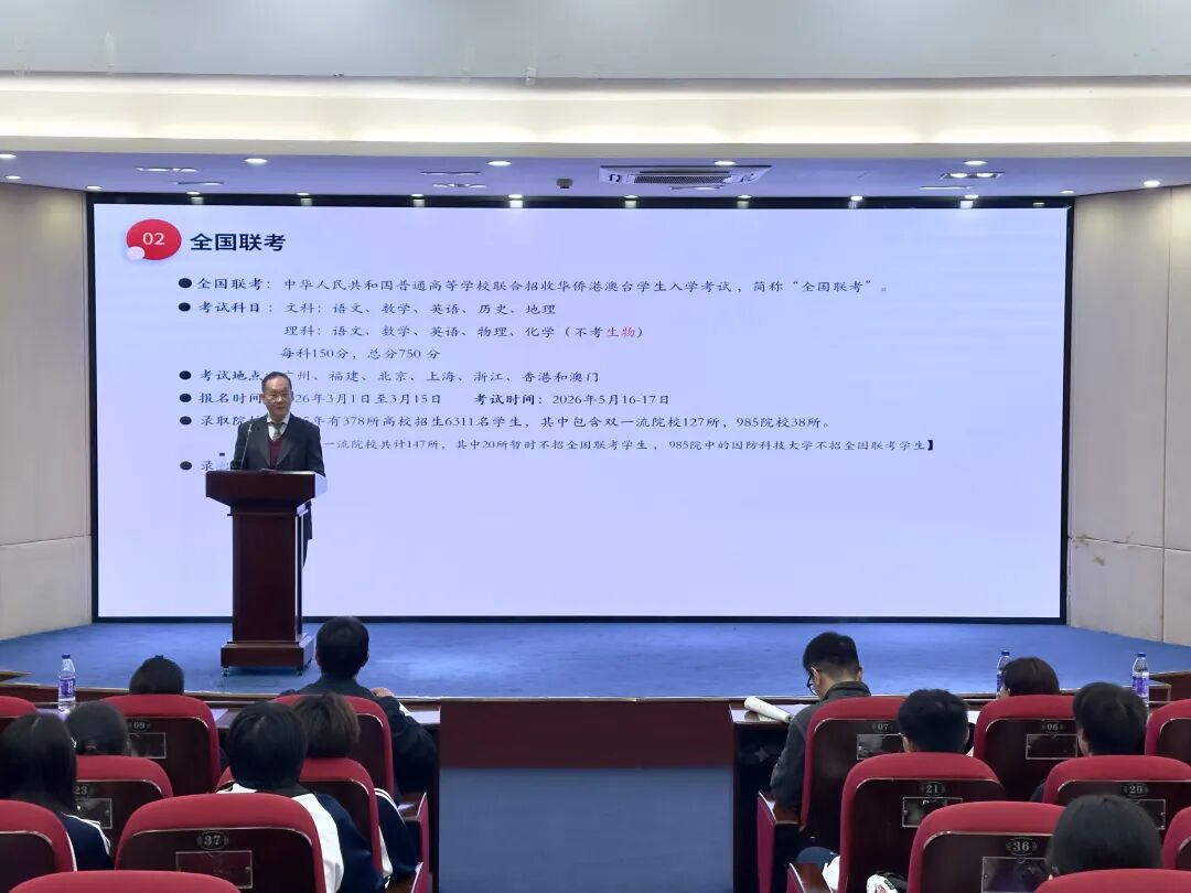 暨附联考已然成为广大港澳台侨学生备战联考的首选学校,学校的核心优势源于三个方面:其一,构建 “全流程精细化” 的教学管理与学生管理体系,以严格标准保障培养质量;其二,依托一支深耕联考领域几十年、教学经验与专业素养双优的师资团队,为暨附学子定制高效备考升学方案,提供优质的联考培训服务,成为港澳台侨学子逐梦优质高校的高质量培养基地;其三,扎根于一个安全规范、配置完善、功能丰富、环境优美、书声琅琅的全封闭式校园,为学生专注学习保驾护航。