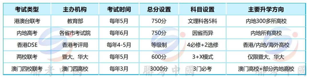 澳门四校联考:由澳门大学、澳门理工学院、澳门旅游学院和澳门科技大学四所高校联合组织,主要面向有意升读澳门高校的学生。