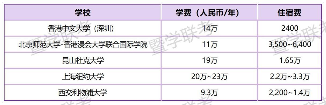 以下列举部分热门中外合办大学费用信息供参考: