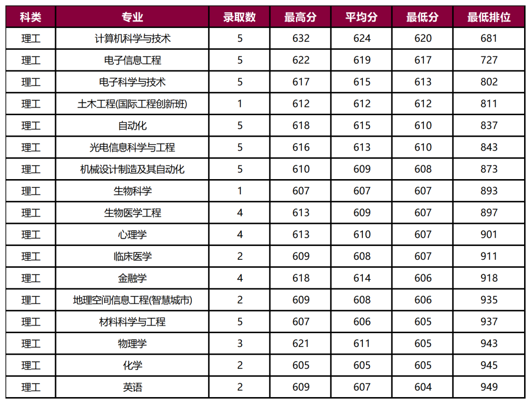 理工类考生需稳定在950名以内,文史类考生需稳定在720名以内,才有较大机会被录取。