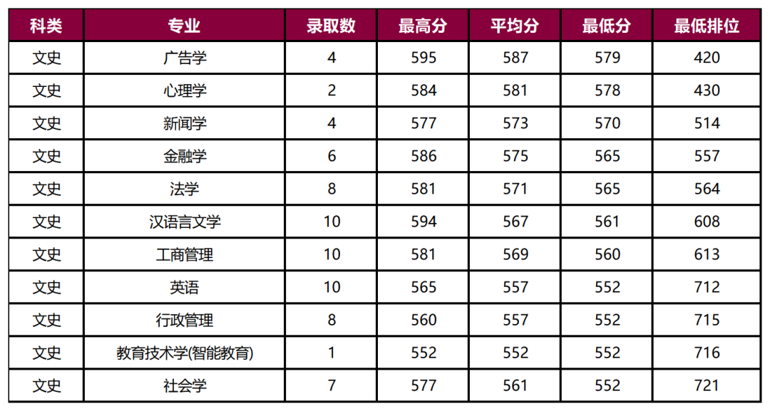 教育技术学(智能教育):最低分552分,排位716名