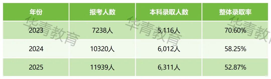 录取率首次跌破53%:整体录取率从2023年的70.6%骤降至2025年的52.87%。