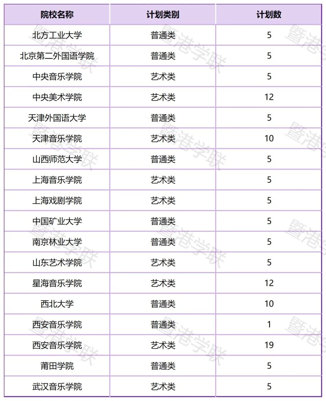 中央音乐学院和中央美术学院分别提供3个和11个艺术类专业,计划招生各5人和12人。
