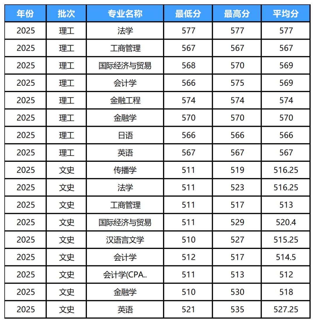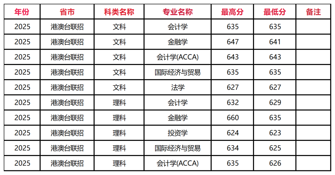 文科:最低分627分(法学),金融学专业竞争最激烈(最低641分、最高647分)