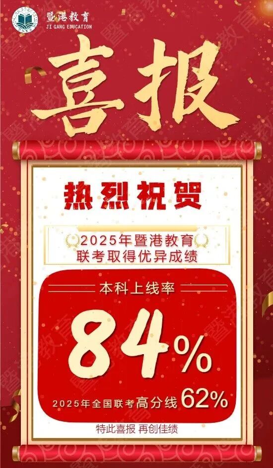 整体成绩亮眼:2025年在全国港澳台联考本科录取率下降至52.86%的背景下,暨港学员整体上线率仍高达84.6%,高分线达标率达62%,600分以上学生20余人。