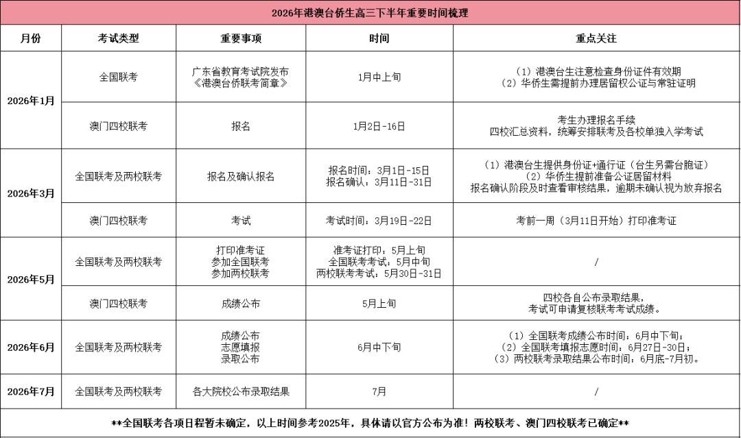 华侨港澳台联考培训学校 > 学习资讯 > 暨附联考(暨南大学管理学院品牌研究院支持):2026届港澳台侨生高三下半年重要时间梳理