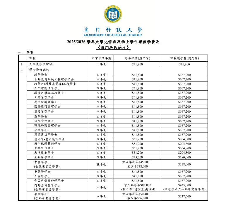 综合预算参考:非本地生在澳门就读本科阶段每年总费用约15万—22万澳门元