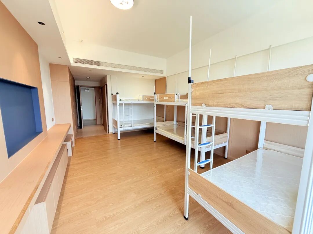 宿舍配置舒适安全,生活老师24小时值班,学校提供四人间与六人间多样房型,配备空调、独立卫浴、饮水机、吹风机和洗衣机,生活便利性高。
