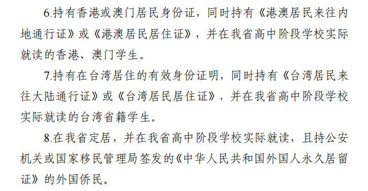 广东省:政策最为宽松,只要港澳台学生拥有内地高中学籍,即可同时报名联考和高考。