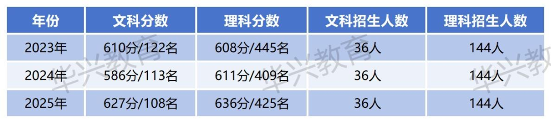 分数线持续上涨:2025年文史类最低录取分数达627分,理工类上涨至636分。