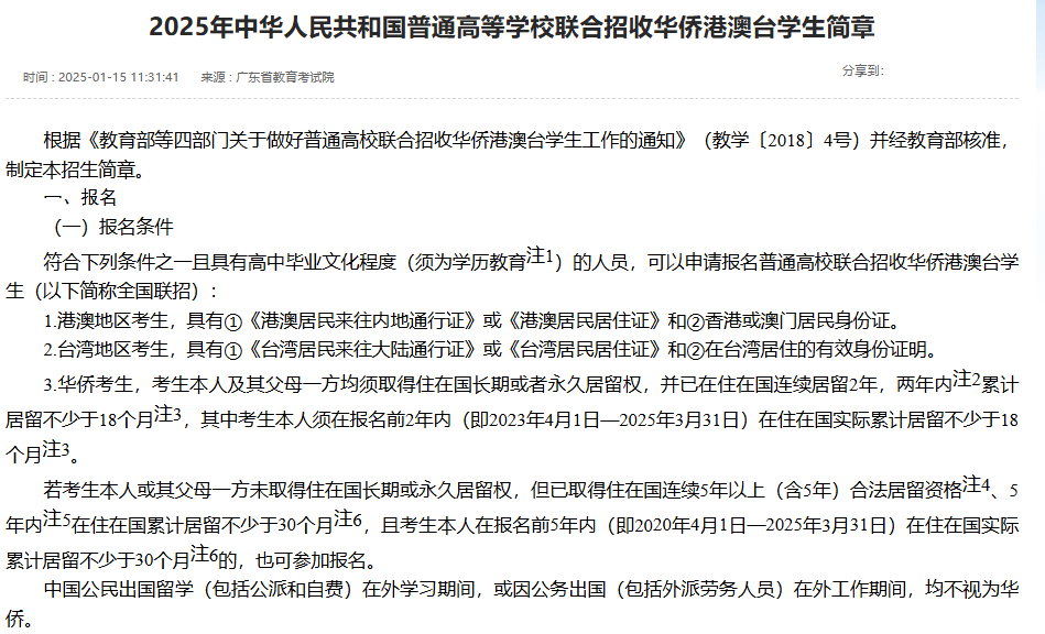 港澳台联考有明确的身份门槛,主要面向港澳台地区学生以及符合居住时限要求的华侨学生。