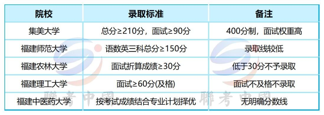 面试成绩要求:多数学校要求≥60分(满分100),部分学校更高(如集美大学≥90分)