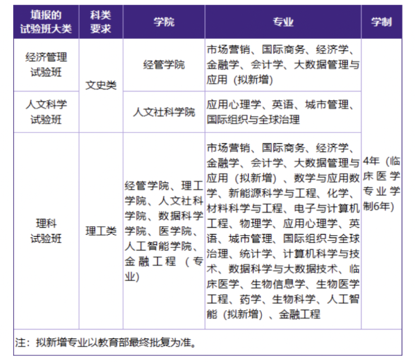 实验班模式:如“理科试验班”、“工科试验班”,通常涵盖多个学科门类的相关专业