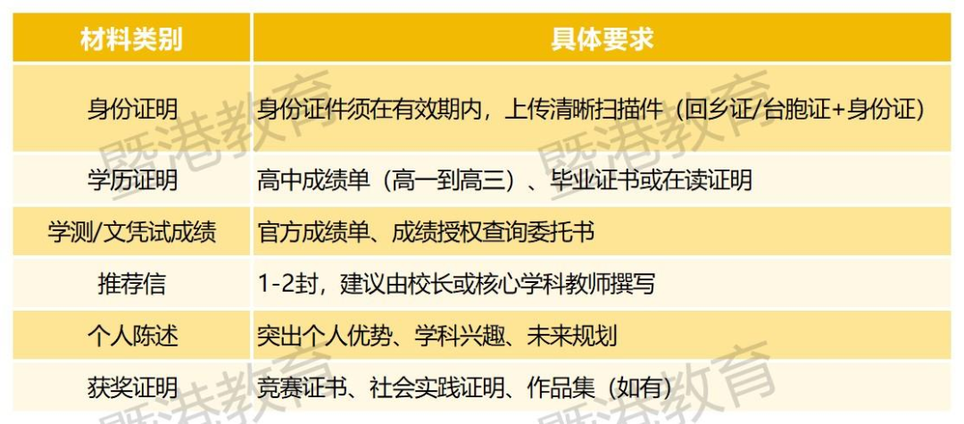 申请资格:台湾高中毕业生需凭当年“学测”成绩申请,要求语文、数学、英文三科均达到“顶标级”标准。若报考理工类专业,数学须为数学A且达到顶标。