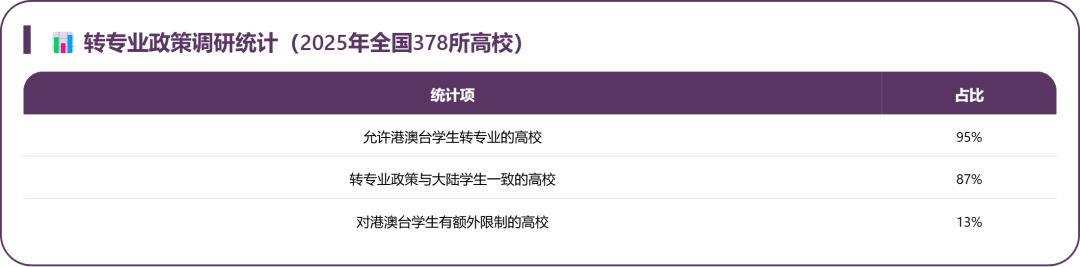 核心结论:转专业政策港澳台联考学生与大陆学生基本一致,但部分院校对港澳台学生有额外要求,医学类、艺术类等专业限制更严格。
