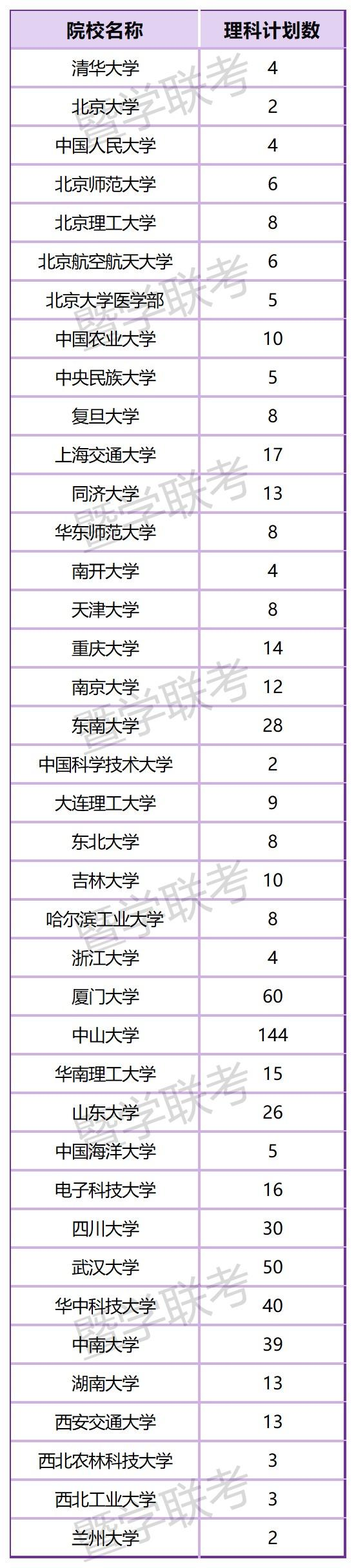 华南地区:中山大学144人(理科招生最多985),厦门大学60人,性价比突出
