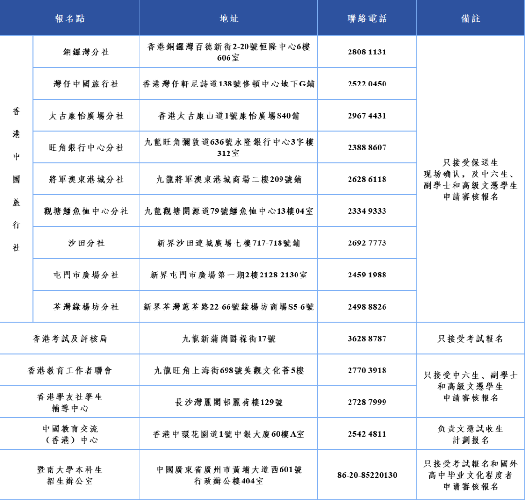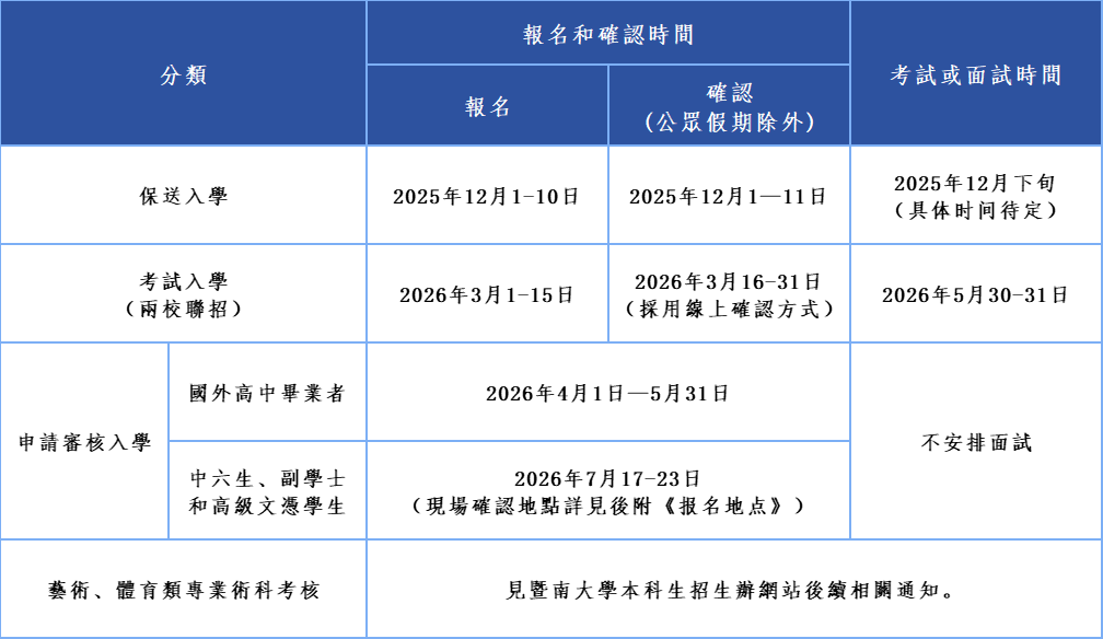 註:上述日期及事項或有更新,將在暨南大學招生辦公室官網公佈。