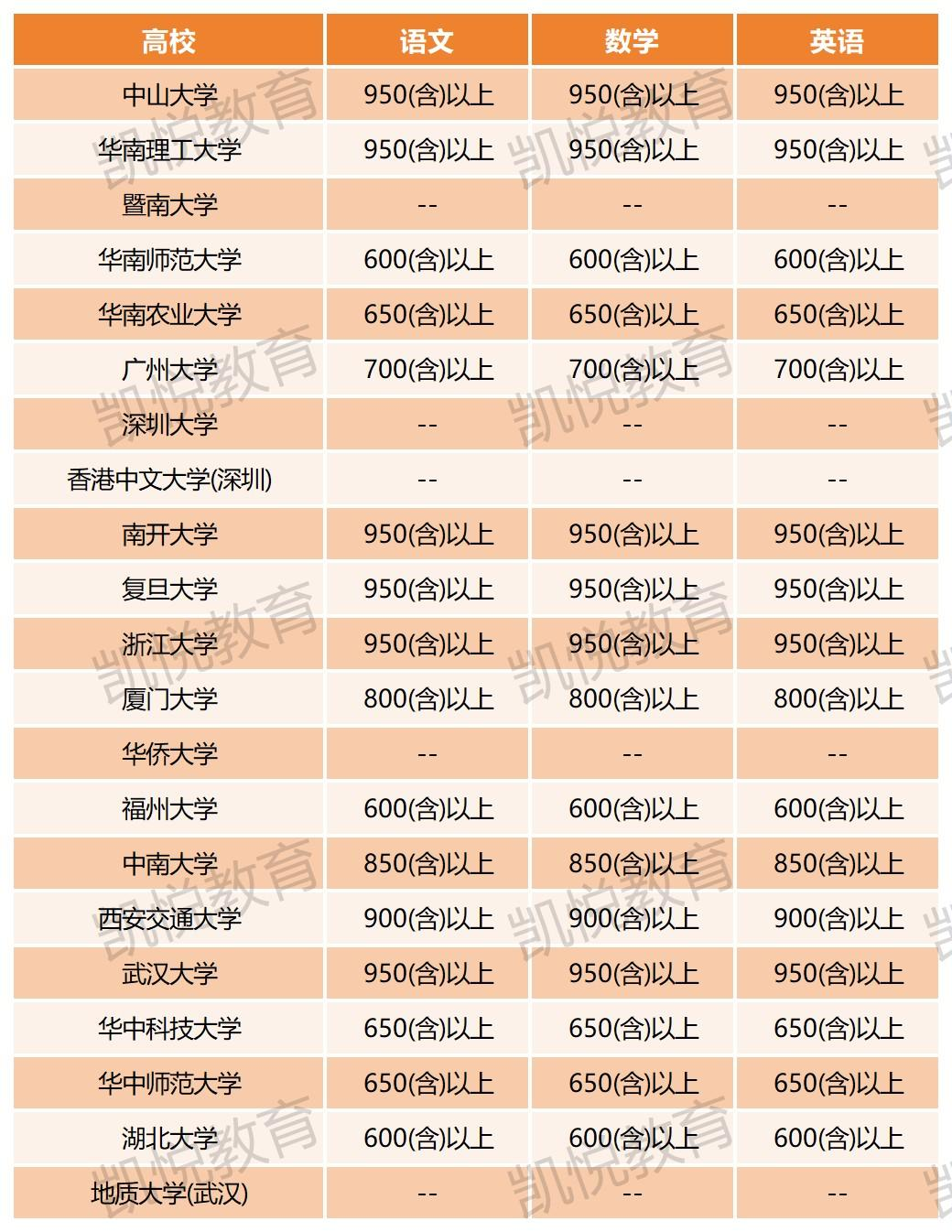 录取门槛由各内地高校自主划定,并无统一分数线。主要要求可归纳为以下几点: