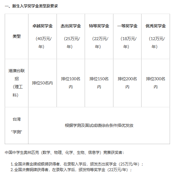 该校针对港澳台联考新生设立联招优异生奖学金: