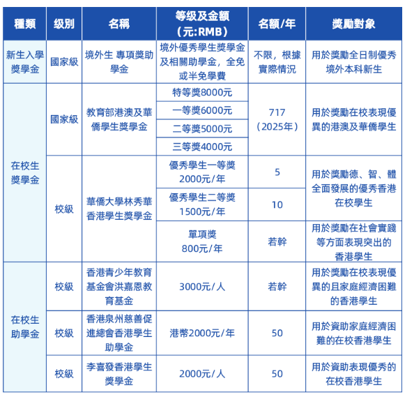 华侨大学一直致力于为侨服务,为港澳台学生提供了多元的奖学金项目。