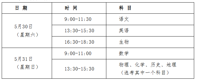 三、考试时间、科目、地点等注意事项