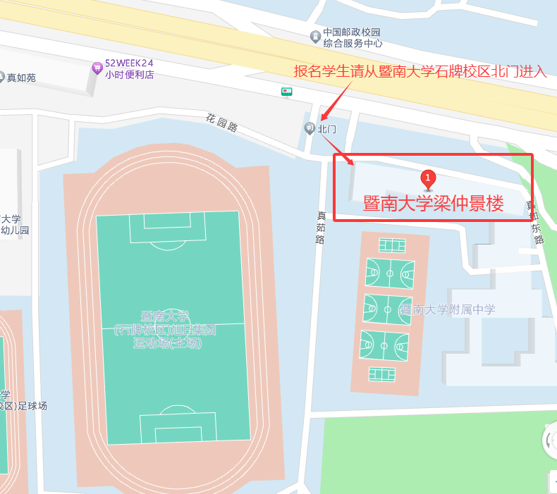 2地点:暨南大学梁仲景楼(由暨南大学广州石牌校区北门进入),详见下图