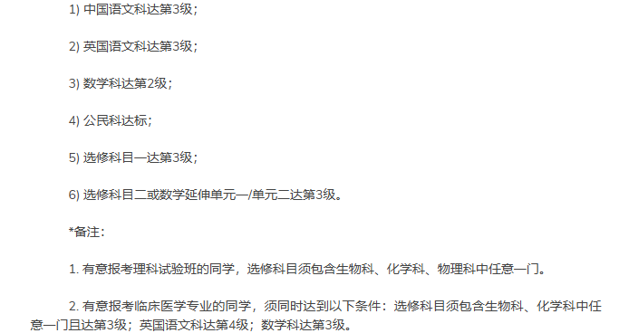 最低录取标准: