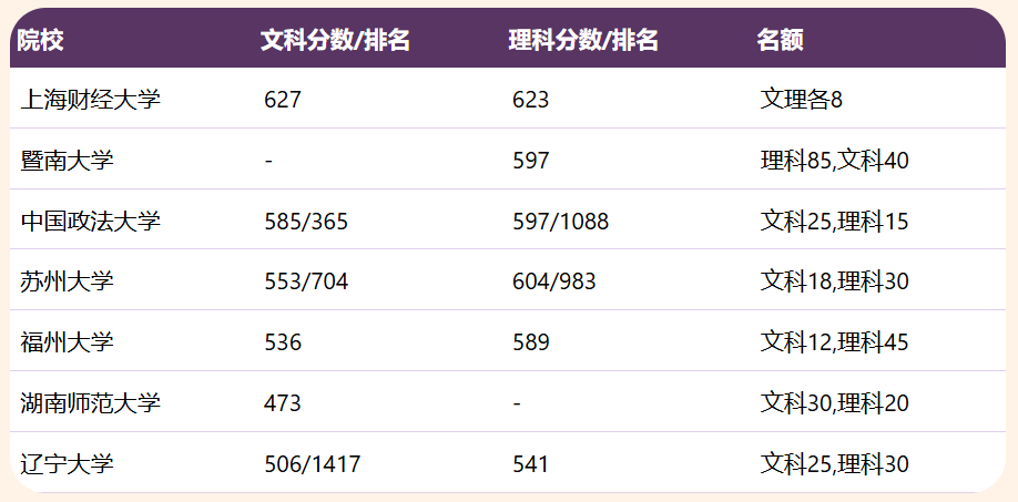 关键趋势:上海财经、暨南大学、中国政法等热门211理科分数线超590分,文科超580分;中西部211如湖南师范、辽宁大学分数线亲民,适合中等考生保底。