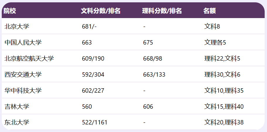 关键趋势:清北人等顶尖985文科分数线均超650分,理科超670分;中西部985分数线相对亲民,如吉林大学、东北大学,适合中等偏上考生冲刺。