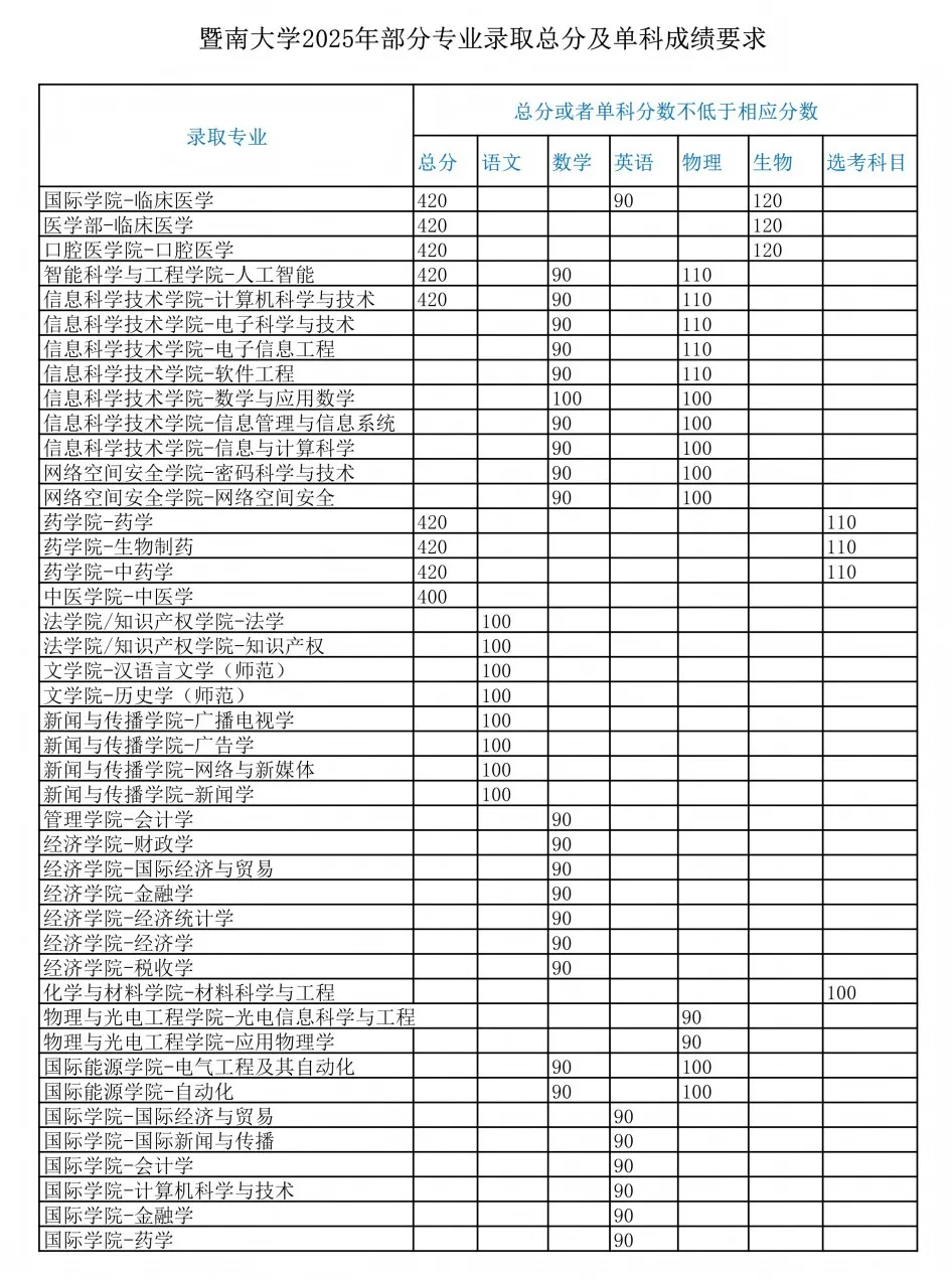 3. 暨大部分专业单科要求