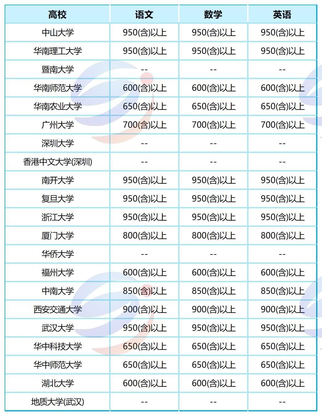 覆盖高校:广州大学(700分)、华中科技大学(650分)、华中师范大学(650分)、华南农业大学(650分)