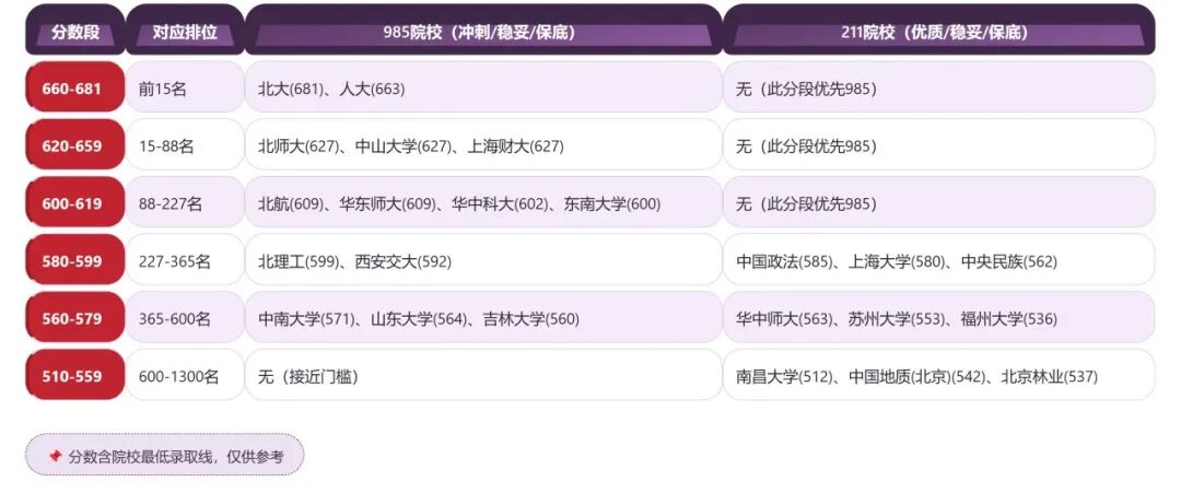 依据2025年港澳台联考官方及院校公布的数据,985/211院校的录取工作已步入“分数 + 排位”的双核心竞争阶段。其中,985院校的录取率约为8.5%,211院校约为10%。以下按照文理科分别给出分数段、排位与可报考院校的精准对应关系,涵盖冲刺、稳妥、保底等不同梯度。